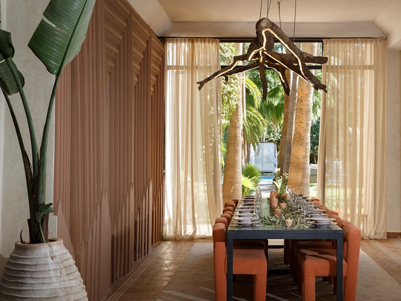 Located just a 15-minute drive from the iconic Jemaa el-Fna square, this villa provides easy access to Marrakech's cultural attractions while offering a private oasis. The villa comes with full services and dedicated house staff, including a gardener, cook, and butler, to cater to your every need.